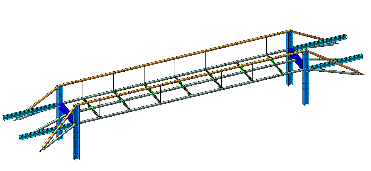 Проектирование и расчет стального висячего моста (КМ, КМД, РР). Расчеты выполнены согласно СП 35.13330.2011 Мосты и трубы
